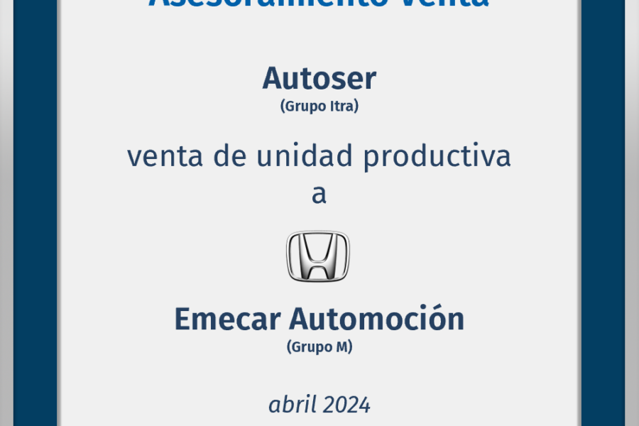 Finae Partners asesoró a Autoser Automóviles, S.L. (perteneciente al Grupo Itra) en la venta de su unidad productiva Honda en Madrid a Emecar Automocion 06, S.L. (Grupo M)