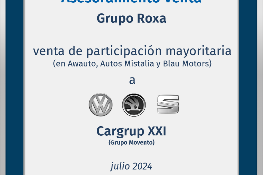 Finae Partners asesoró a Grupo Roxa en la venta de una participación mayoritaria en sus 3 mayores compañías de automoción (Awauto S.L., Autos Mistalia S.L. y Blau Motors S.A.) en ...
