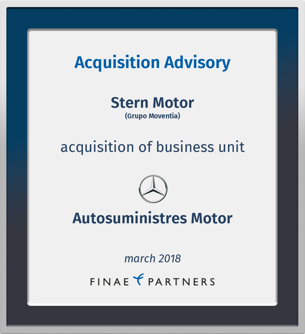 Finae Partners advised Stern Motor, S.L.U. (belonging to Grupo Moventia) in the acquisition of Mercedes Benz business unit from Autosuministres Motor, S.A.