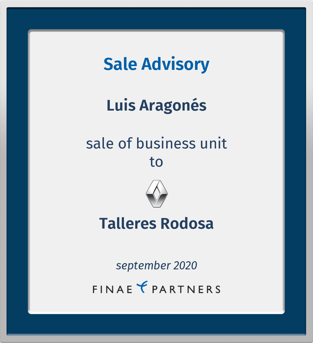 Finae Partners advised Luis Aragonés y Compañía, S.L. in the sale of its Renault operations to Talleres Rodosa, S.L.
