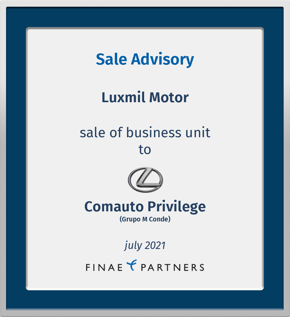 Finae Partners advised Luxmil Motor, S.A. in the sale of its Lexus operations to Comauto Privilege, S.L.U. (belonging to Grupo M Conde)