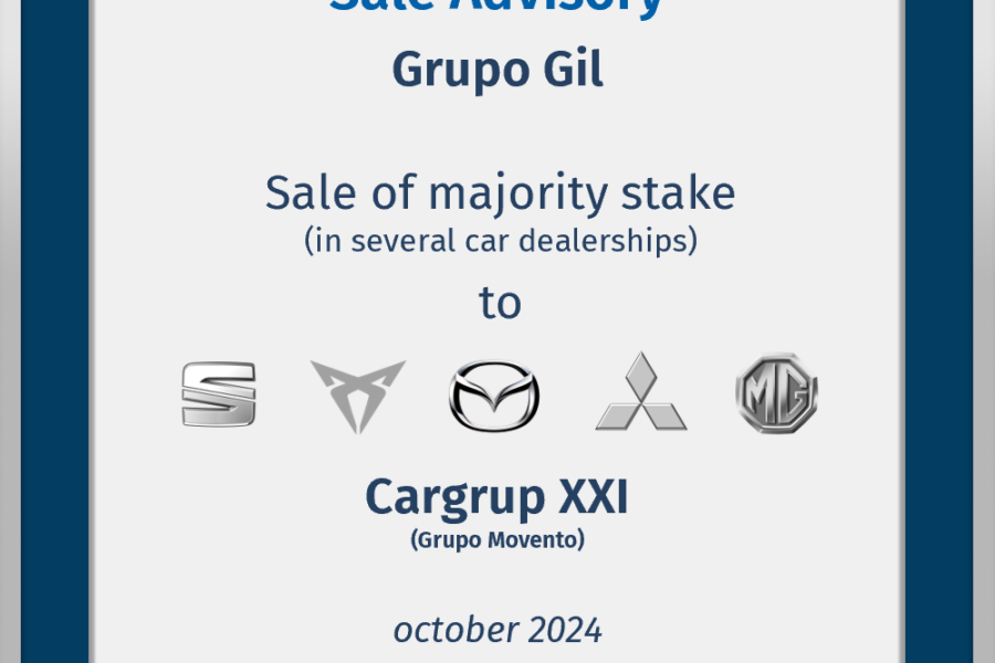 Finae Partners advised Grupo Gil in the sale of a majority stake in its car dealerships in Madrid (Gil Automoción del Henares S.L., Corredor GV y Asociados S.L., Agrogil S.A., ...