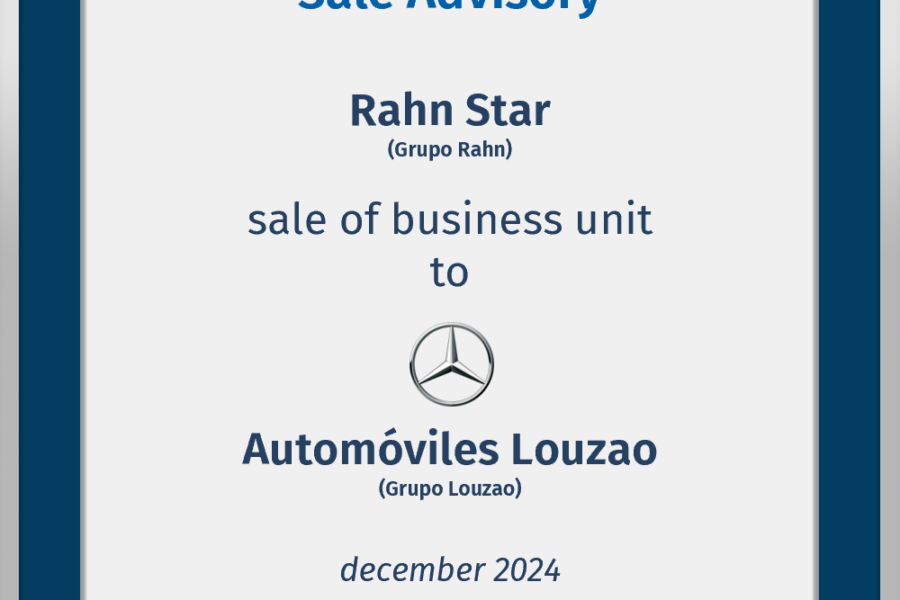 Finae Partners advised Rahn Star, S.A., Rahn Auto Universal, S.A., Grupo Guillermo Rahn, S.A. and Rahn Group Siglo XXI, S.A., companies belonging to Grupo Rahn, in the sale of their ...