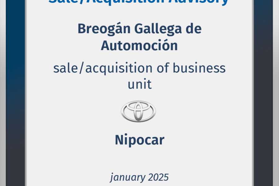 Finae Partners acted as financial advisor for both parties, seller and acquiror, in the acquisition of Nipocar Galicia, S.L.U. Toyota operations in the region of Pontevedra, by Breogán Gallega de ...