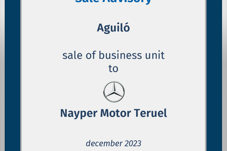 Finae Partners advised Aguiló, S.L. in the sale of its Mercedes Benz operations to Nayper Motor Teruel, S.L.U. (belonging to Grupo Nayox 2000)