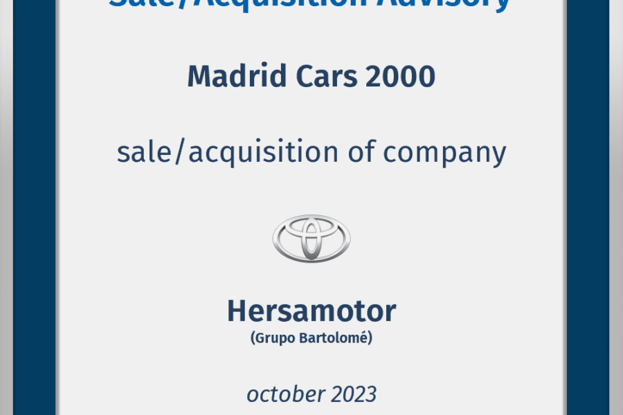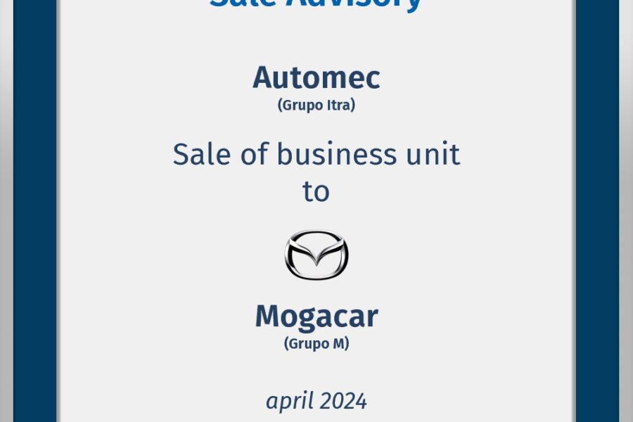 Finae Partners advised Automec Automóviles, S.L (belonging to Grupo Itra) in the sale of its Madza operations in Madrid to Mogacar Automocion, S.L. (Grupo M)