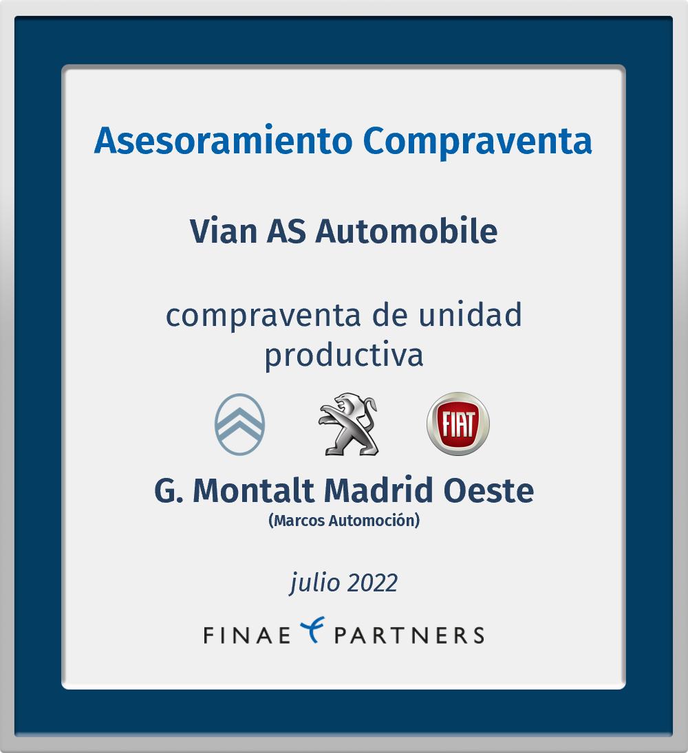 Finae Partners fue el asesor financiero en la compra de la unidad productiva de Grupo Montalt Madrid Oeste, S.L.U. (perteneciente a Marcos Automoción) por parte de Vian AS Automobile, S.L.
