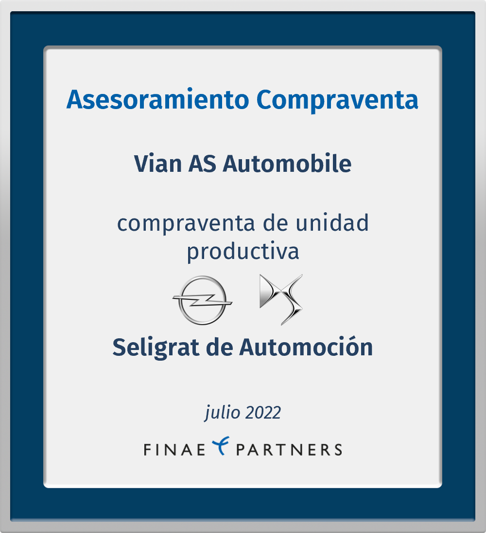 Finae Partners fue el asesor financiero en la compra de la unidad productiva de Seligrat de Automoción, S.L.U. por parte de Vian AS Automobile, S.L.