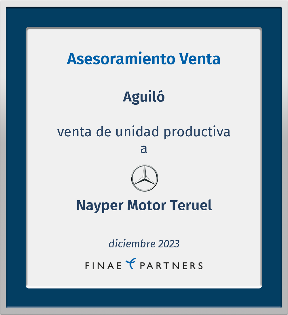 Finae Partners asesoró a Aguiló, S.L. en la venta de su unidad productiva a Nayper Motor Teruel, S.L.U. (perteneciente al Grupo Nayox 2000)