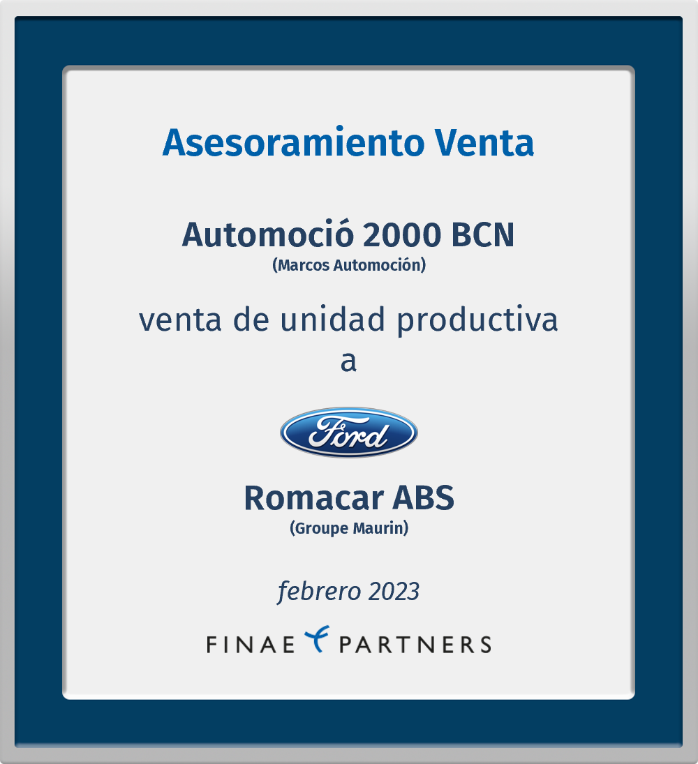 Finae Partners asesoró a Automoció 2000 BCN, S.A.U. (perteneciente a Marcos Automoción) en la venta de su unidad productiva a Romacar ABS, S.L.U. (perteneciente a Groupe Maurin)
