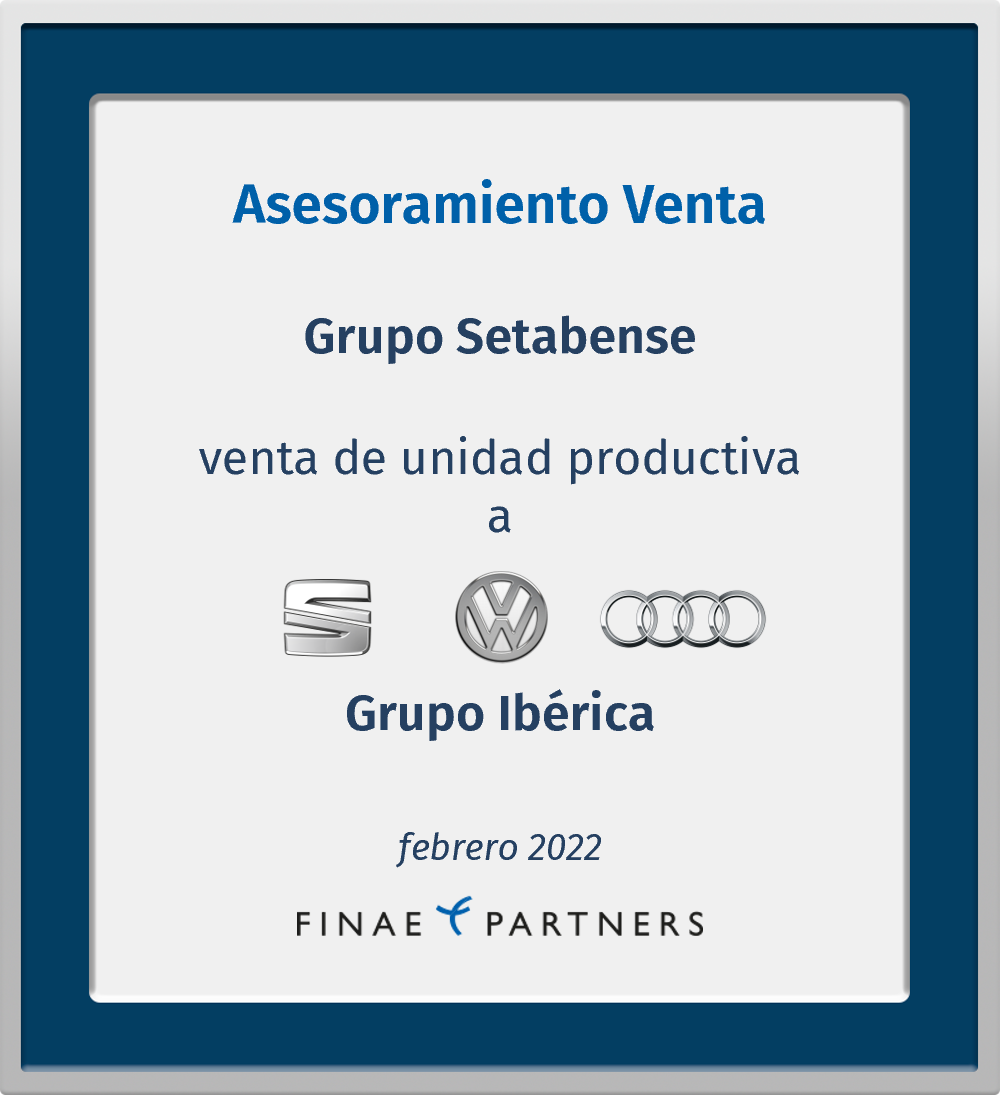 Finae Partners asesoró a Alcoi Wagen, S.L., Alzira Import, S.L., Autoclariana, S.A., Comercial Setabense, S.A., Gandía Motors, S.A., Servicios y Automóviles, S.A. y Talleres Xátiva, S.A. (todas ellas pertenecientes a Grupo Setabense) en la venta de sus respectivas unidades productivas a varias compañías del Grupo Ibérica