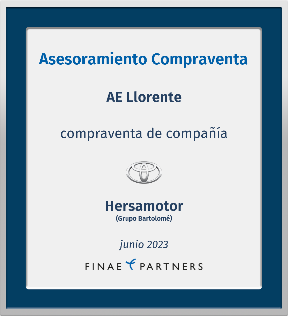 Finae Partners fue el asesor financiero en la compra de AE Llorente, S.A. por parte de Hersamotor, S.A.U. (perteneciente al Grupo Bartolomé)
