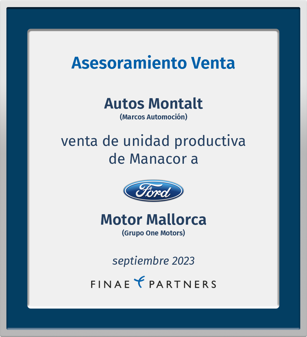 Finae Partners asesoró a Autos Montalt, S.A. (perteneciente a Marcos Automoción) en la venta de su unidad productiva de Manacor a Motor Mallorca, S.A. (Grupo One Motors)