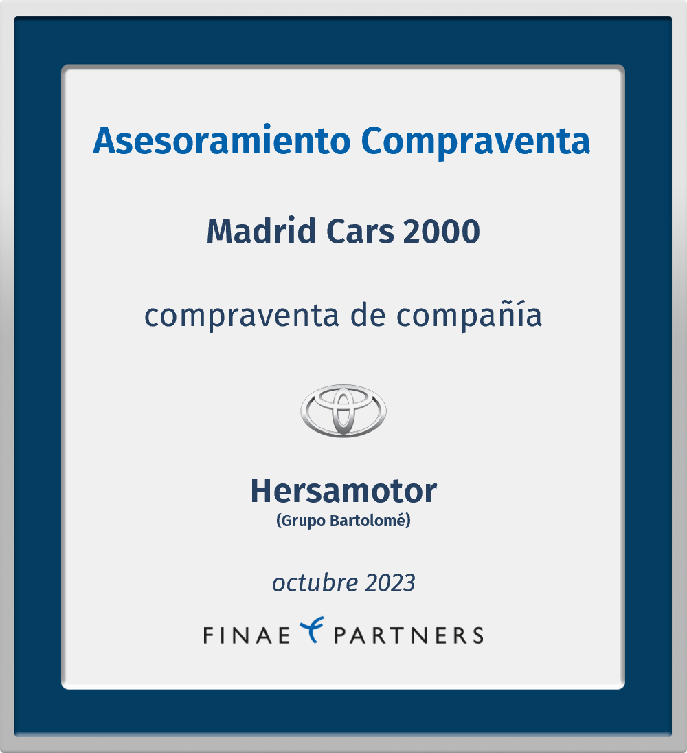 Finae Partners fue asesor financiero en la compra de Madrid Cars 2000, S.L. y de la unidad productiva de Lantia 2000, S.L. por parte de Hersamotor, S.A.U. (perteneciente al Grupo Bartolomé)