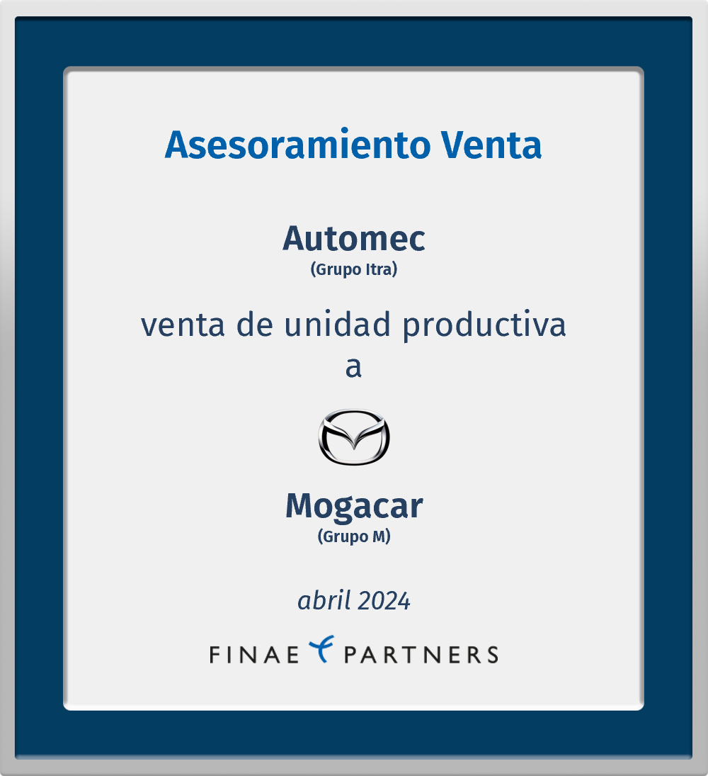 Finae Partners asesoró a Automec Automóviles, S.L. (perteneciente al Grupo Itra) en la venta de su unidad productiva Mazda en Madrid a Mogacar Automocion, S.L. (Grupo M)
